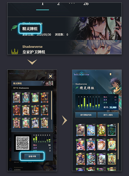 点击搜索结果中显示的牌组名,便可查看牌组详情。点击“查看详情”按钮,便可跳转至牌组详情页面,查看更加详细的牌组内容。