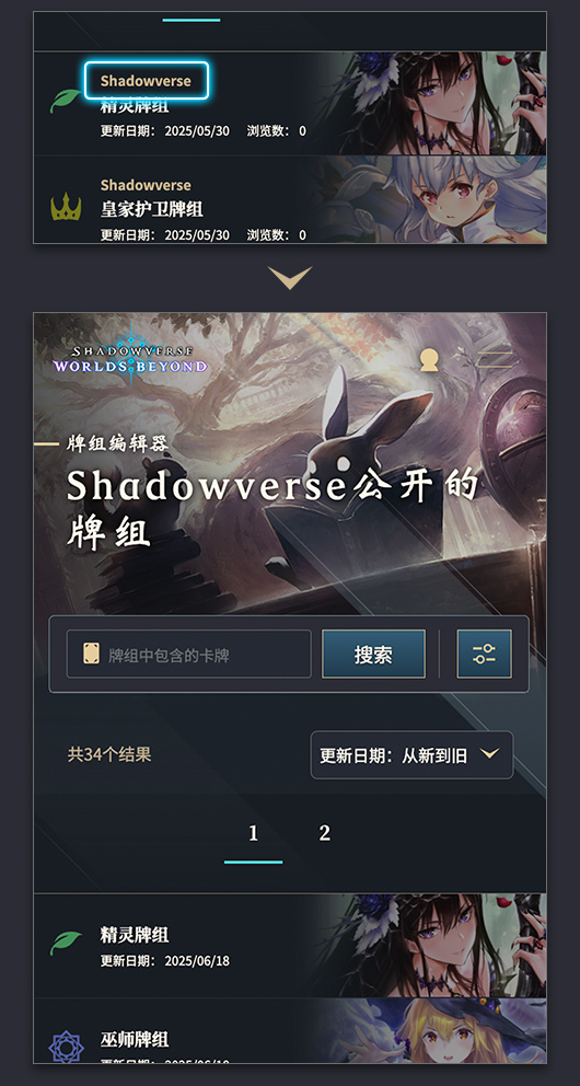 可通过职业和牌组内所包含的卡牌来搜索牌组。