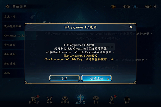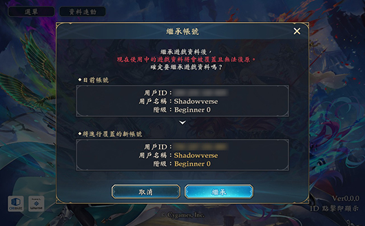 透過「Cygames ID連動」進行資料連動後,即可在其他裝置上繼承與「Cygames ID」完成連動的遊戲資料。