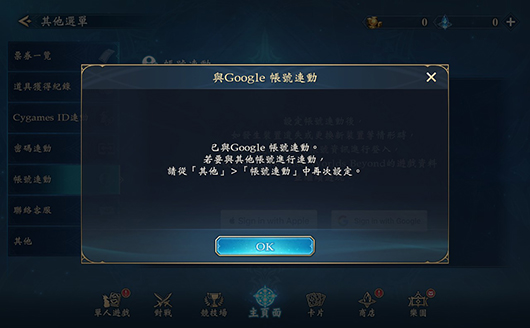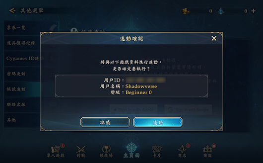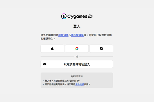 如欲進行「Cygames ID連動」,須先建立「Cygames ID」並與遊戲資料完成連動。