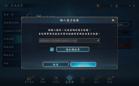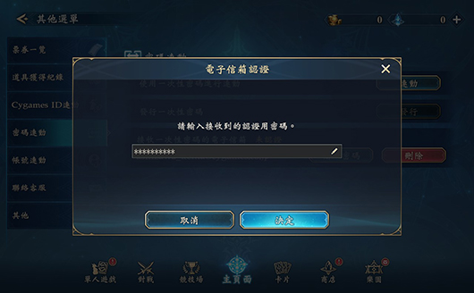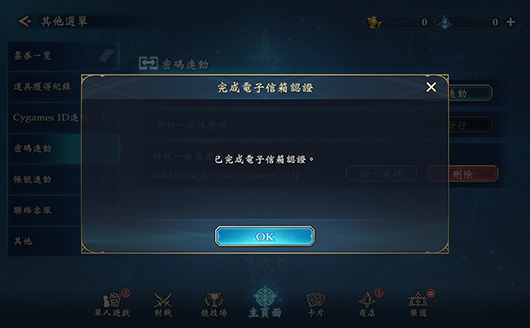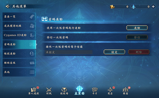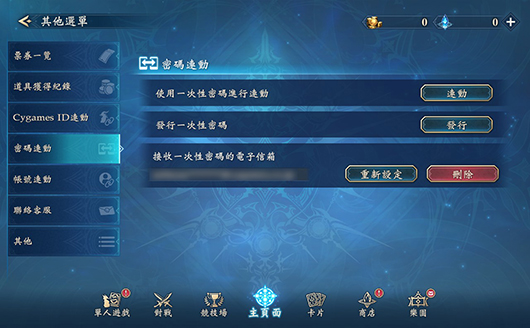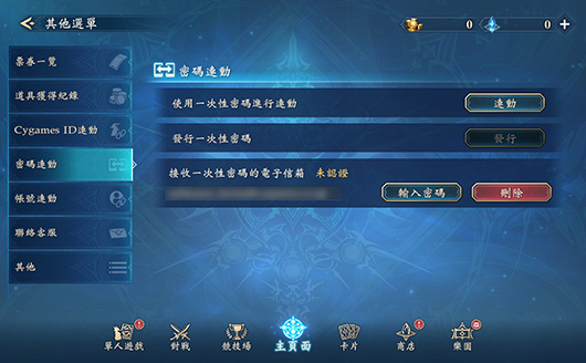 如欲進行「密碼連動」,須先藉由目前遊玩的裝置進行電子信箱認證與發行一次性密碼,隨後再至欲進行連動的裝置中輸入用戶ID與所發行的一次性密碼。