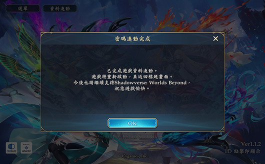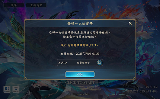 請在欲進行連動的裝置中安裝《Shadowverse: Worlds Beyond》後,於遊戲標題畫面內輸入先前遊玩裝置的用戶ID與所發行的一次性密碼。