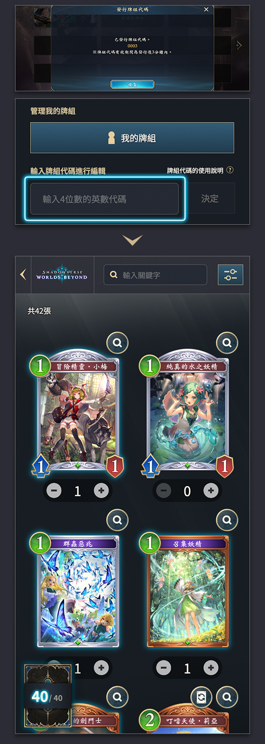 按下「發行牌組代碼」或「QR碼」按鈕,即可發行對應的代碼。