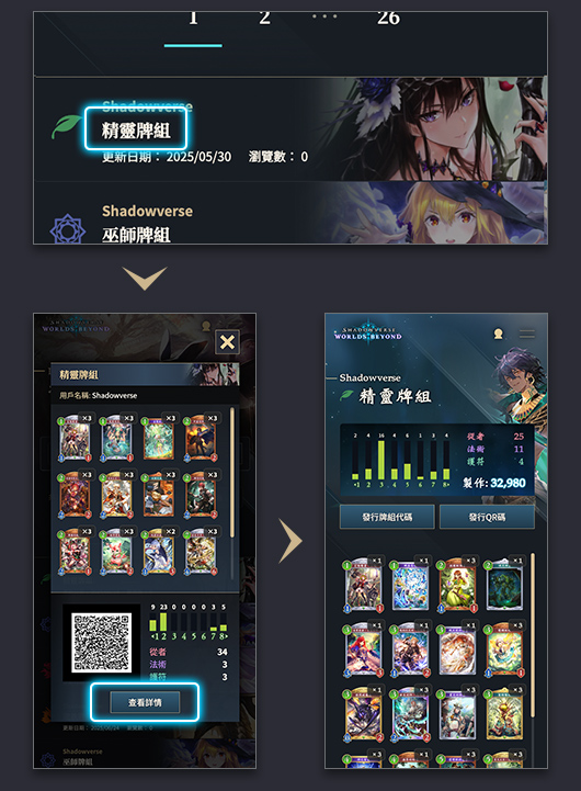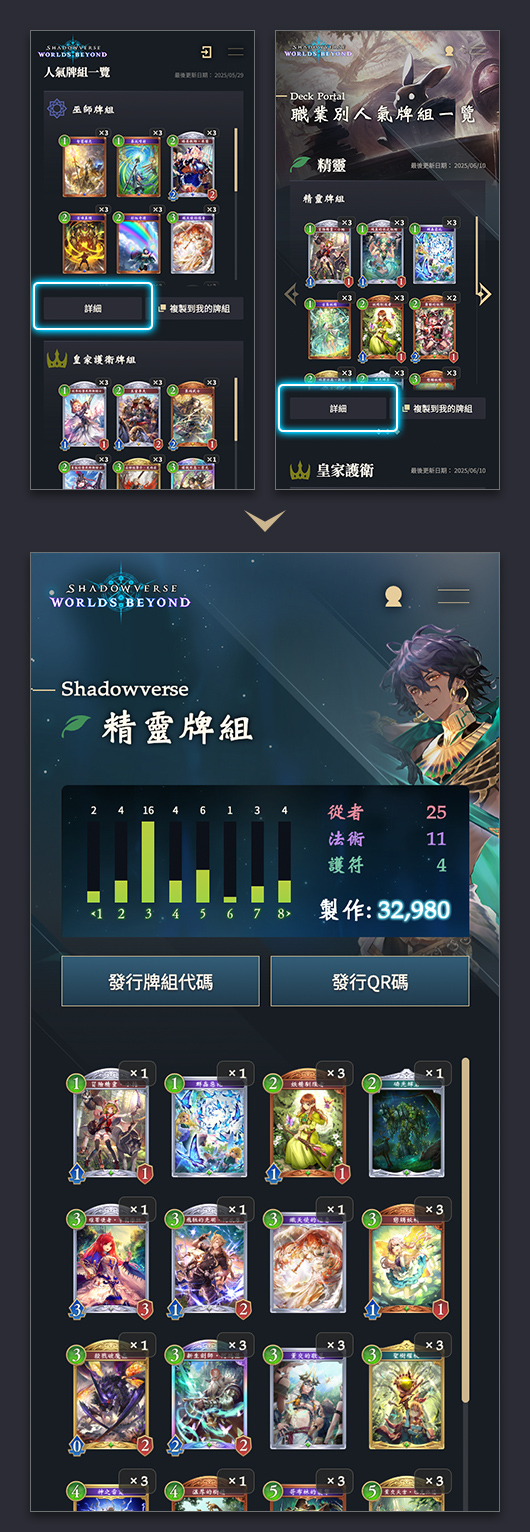按下「查看詳情」按鈕,可移動至牌組詳情頁面,並查看更加詳細的牌組內容。