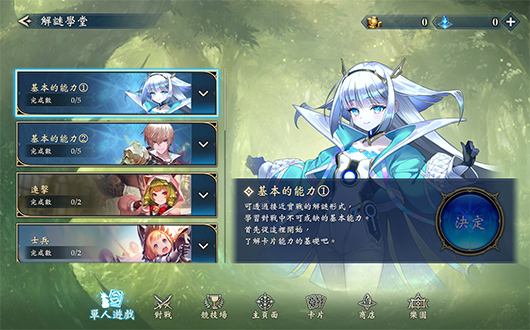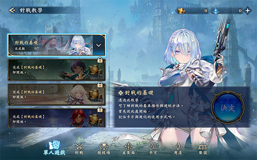 在對戰教學中,可與歐絲學習對戰的基本要素,並了解各職業的牌組類型。