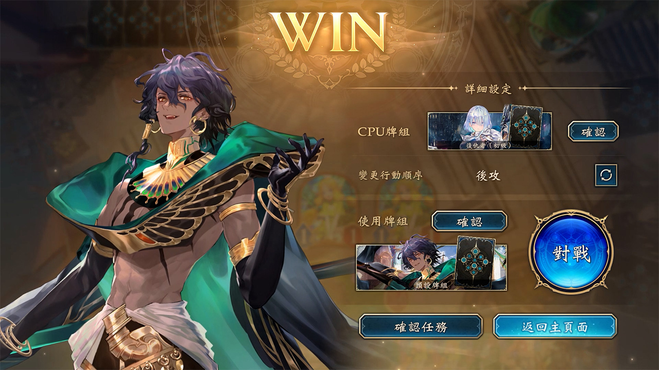 在練習模式中,可使用喜愛的牌組與CPU進行對戰練習。