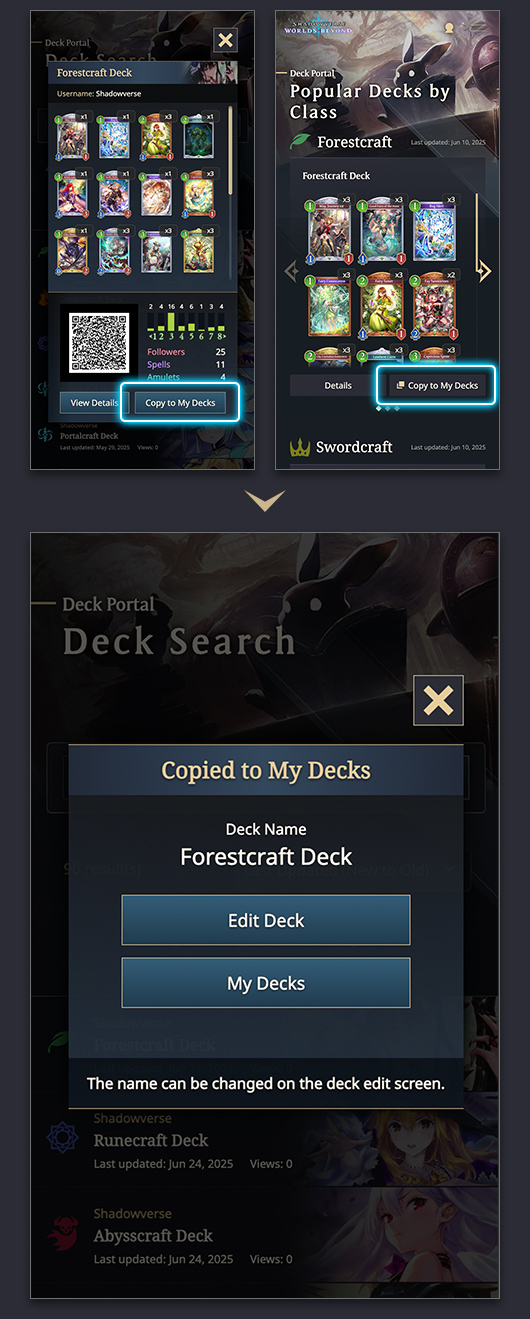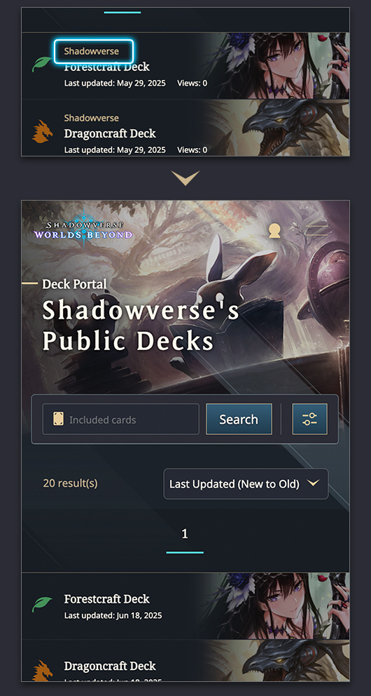 In the Deck Portal, you can search for popular decks or decks created by other players.