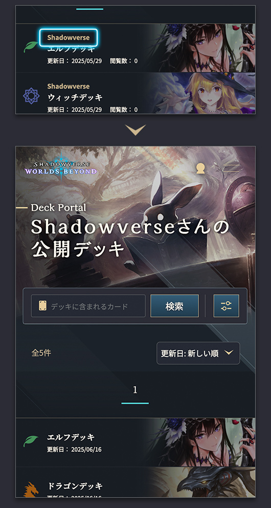 クラスやデッキに含まれるカードからデッキを検索することができます。
