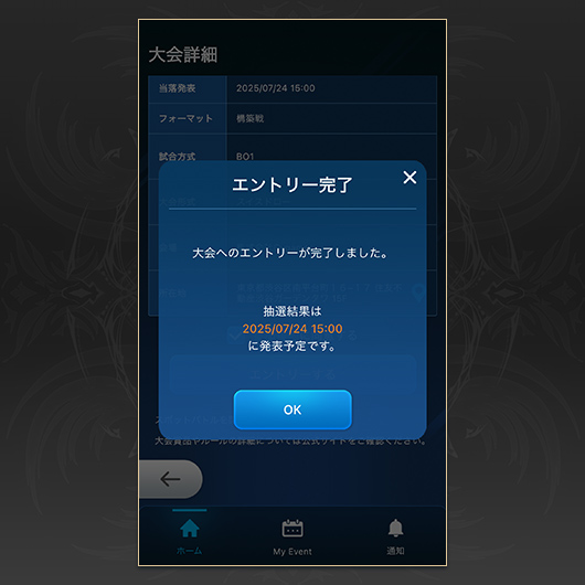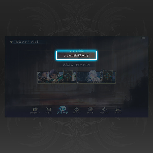デッキ登録が行われていない場合、大会に参加することができません。