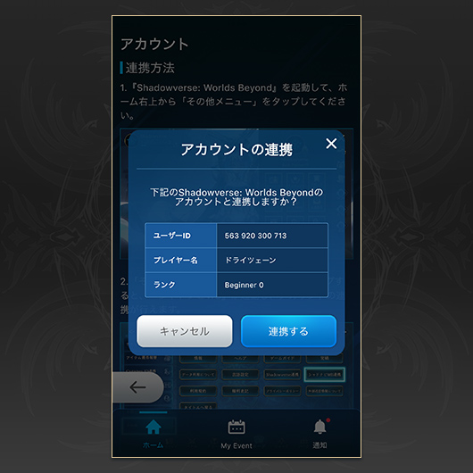 エントリー締切までに「Shadowverse: Worlds Beyond」と未連携の場合は落選となります。