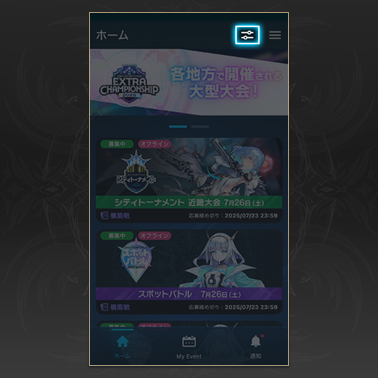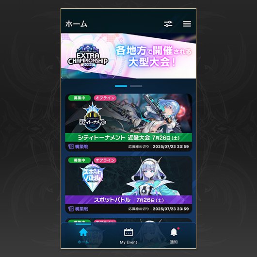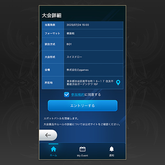 その後、デッキ登録を行う大会を選択します。