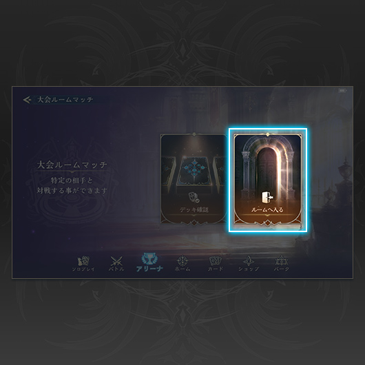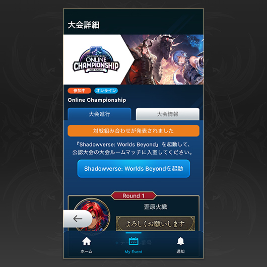 対戦組み合わせが発表されたら、「Shadowverse: Worlds Beyond」で大会ルームマッチに入室します。