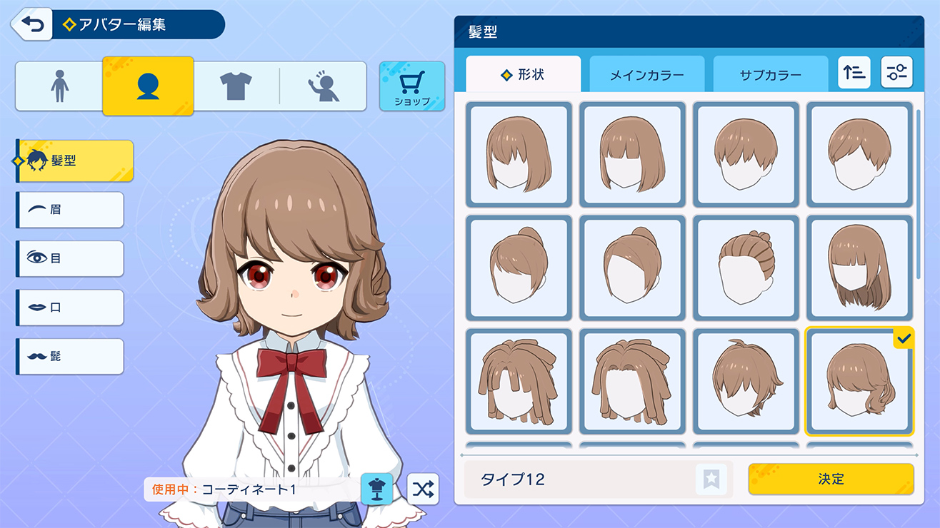 髪型、服装など自分だけのオリジナルアバターを作成することができ、