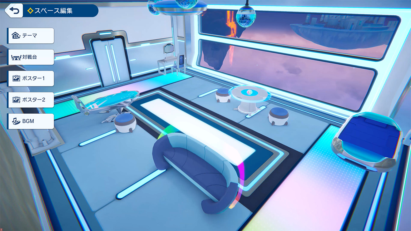 ポスターや対戦台、BGMなど施設の見た目をカスタマイズすることができ、
