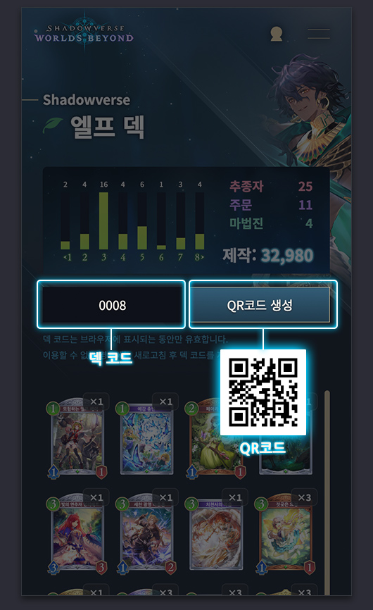 [덱 코드 발행] 또는 [QR코드 생성] 버튼을 누르면 각각의 코드를 확인할 수 있습니다.